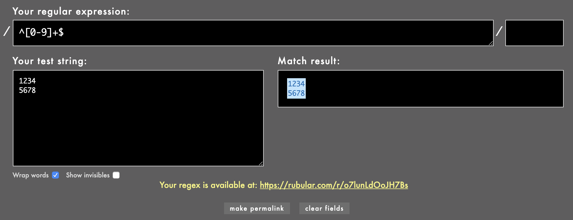 둘 다 결국 같은 표현식이다. 정말 단순하고 심플하지 않은가. 0~9로 이루어진 1자리 이상의 숫자면 그냥 통과다.