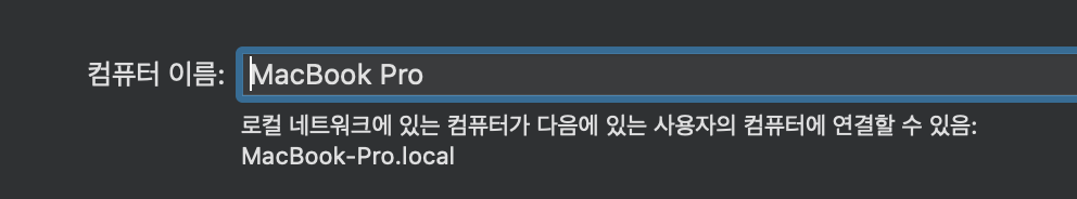 - command + space > 시스템 환경설정 > 공유에서 확인